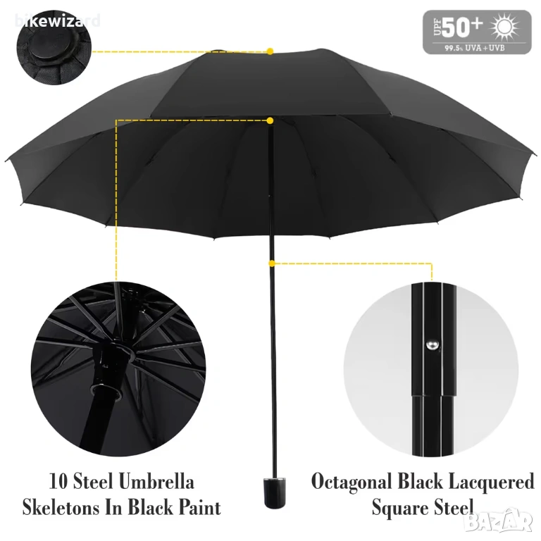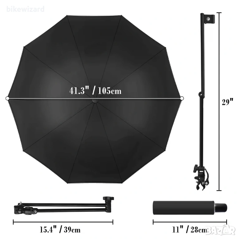 Wilray UPF 50+ регулируем чадър със скоба за стол – черен НОВ → Обява 53639526
