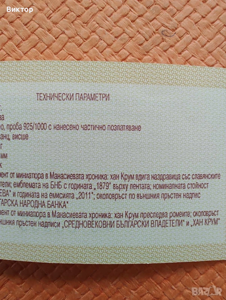 Сребърна монета 10 лв 2011 г. Хан Крум → Обява 53639545