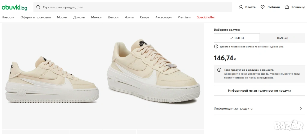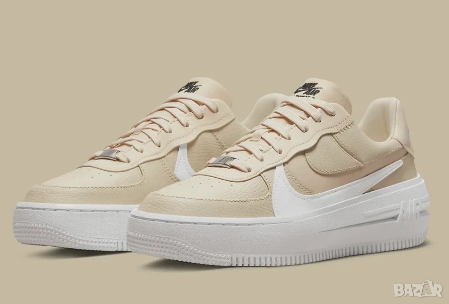 маратонки Nike Air Force 1 PLT.AF.ORM в разцветка „Fossil“. Това е модернизирана версия на класическия силует Air Force 1, отличаваща се с повдигната подметка и „разчупен“ дизайн.