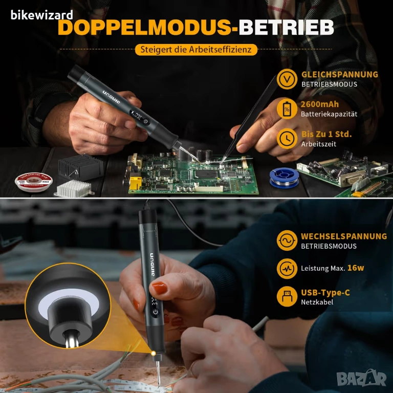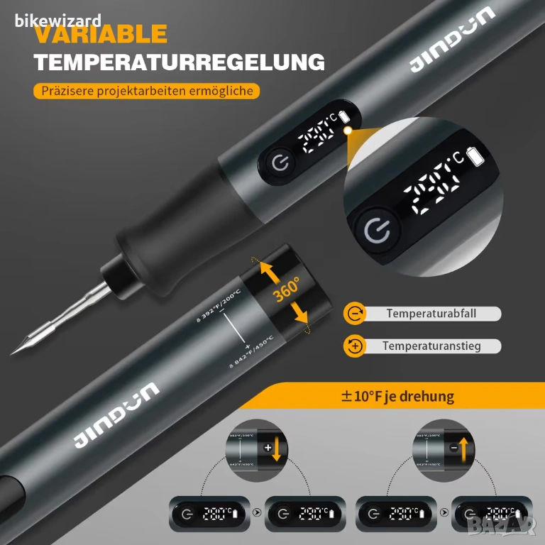 Комплект поялник, преносим, ​​регулируема температура 200–450°C акумулаторна батерия НОВО → Обява 53639681