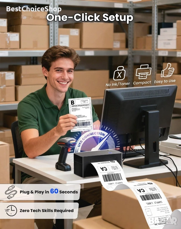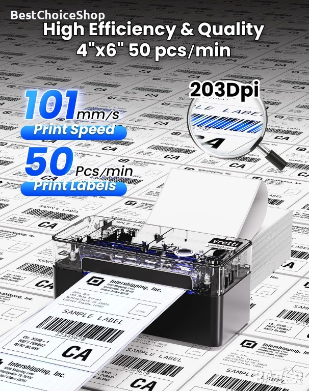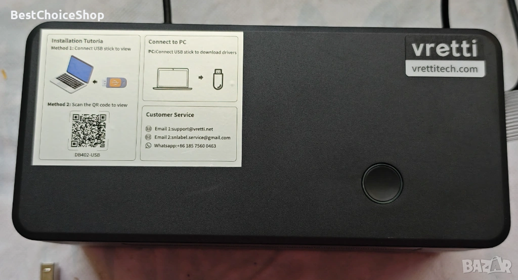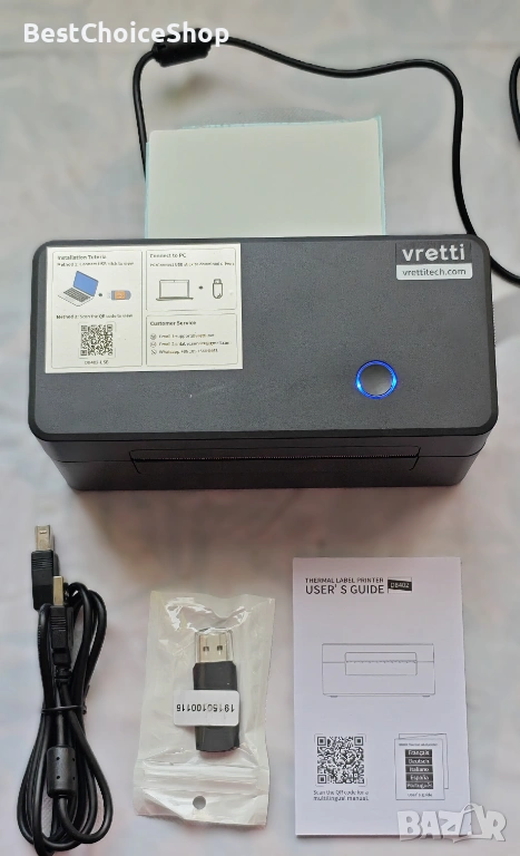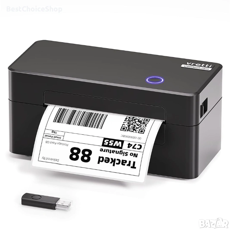 опаковане и изпращане с Vretti DB402, високопроизводителен термопринтер за етикети, идеален за онлайн бизнеси, складове, офиси, куриери и предприемачи. Бърза USB връзка, висока скорост, отлично качество и универсална съвместимост с всички платформи.