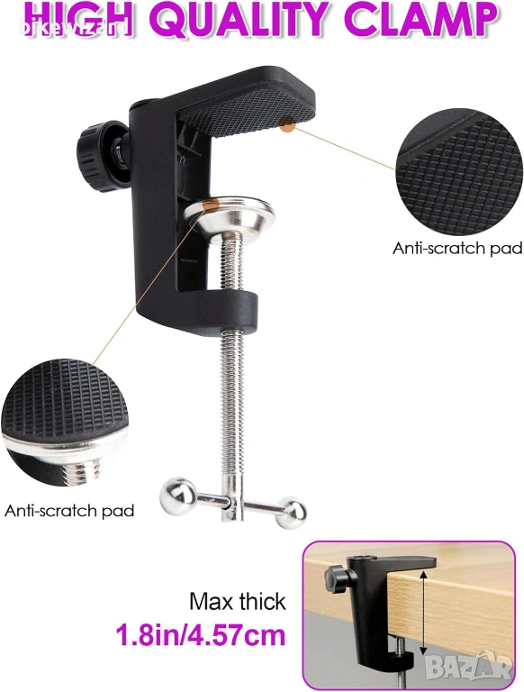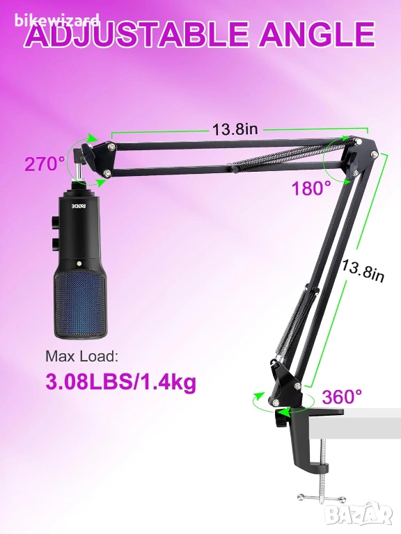 Широка съвместимост Това рамо за микрофон е съвместимо с микрофони Rode NT-USB, NT-USB+, NT-USB MINI, NT1 Signature Series, PodMic, PodMic USB, XCM-50. Моля, обърнете внимание: продуктът не включва микрофон. ПРОФЕСИОНАЛНО РАМО ЗА МИКРОФОН Двойните пружини на всяка регулируема стойка предотвратяват клатушкане или падане на вашия микрофон. Изработено от здрава стомана, инсталирането и сгъването са лесни. YOUSHARES стойката за микрофон е идеална за създатели на съдържание, стрийминг на живо и ASMR автори. Контрол на кабелите За разлика от традиционните конструкции за опъване с метални скоби за настолни компютри, нашата тръба за управление на кабелите не се плъзга и не се чупи. Поддържайте стойката си за микрофон NT-USB подредена с този кабелен ръкав, задължителен за чиста настройка на рамото на микрофона. КОМПЛЕКТ „ВСИЧКО В ЕДНО“ Пакетът включва стойка за микрофон NT USB, скоба за бюро, винтов адаптер от 3/8" до 5/8" и два кабелни ръкава. Забележка: Микрофонът NT-USB не е включен.