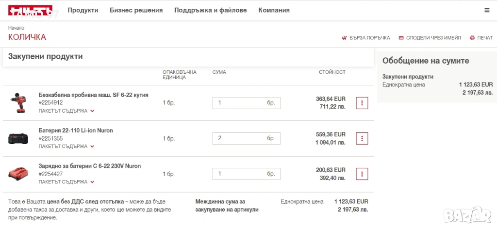 Продавам мощен безчетков винтоверт на Хилти от новата Nuron серия неразличим от нов и използван броени пъти, както се вижда на снимките почти без следи от използване и работи брилянтно, производство от 12.2024 внос от Франция. Обявената цена включва винтовертта с две батерии по 22V 5.10Ah с индикатор и бързо зарядно с охлаждане. Пращаме с опция преглед и тест с куриерска фирма еконт може и лично предаване за гр. Шумен. Магазинската цена на комплекта е: 1 123евро БЕЗ ДДС (С ДДС е 1 348евро)
