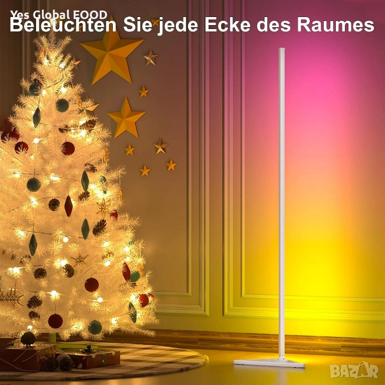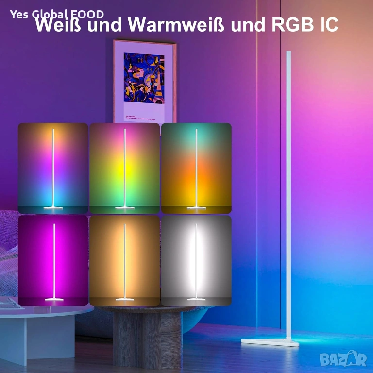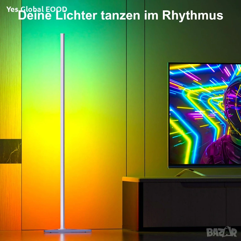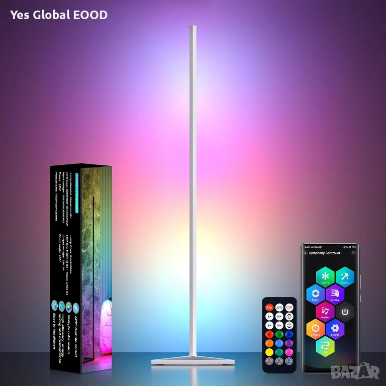 Модерна RGBIC LED подова лампа 140 см, създадена за стилно осветление на хола, спалнята или гейминг пространството. Поддържа управление чрез мобилно приложение, регулиране на яркостта и избор измежду 16 милиона цвята.