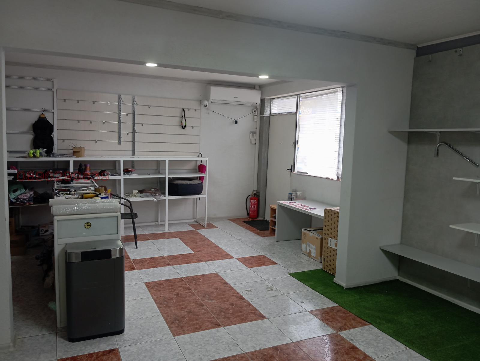 Помещението е оборудвано с голяма щора,с възможност за внасяне на по габаритни стоки!