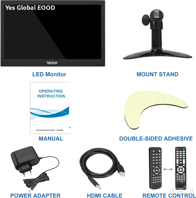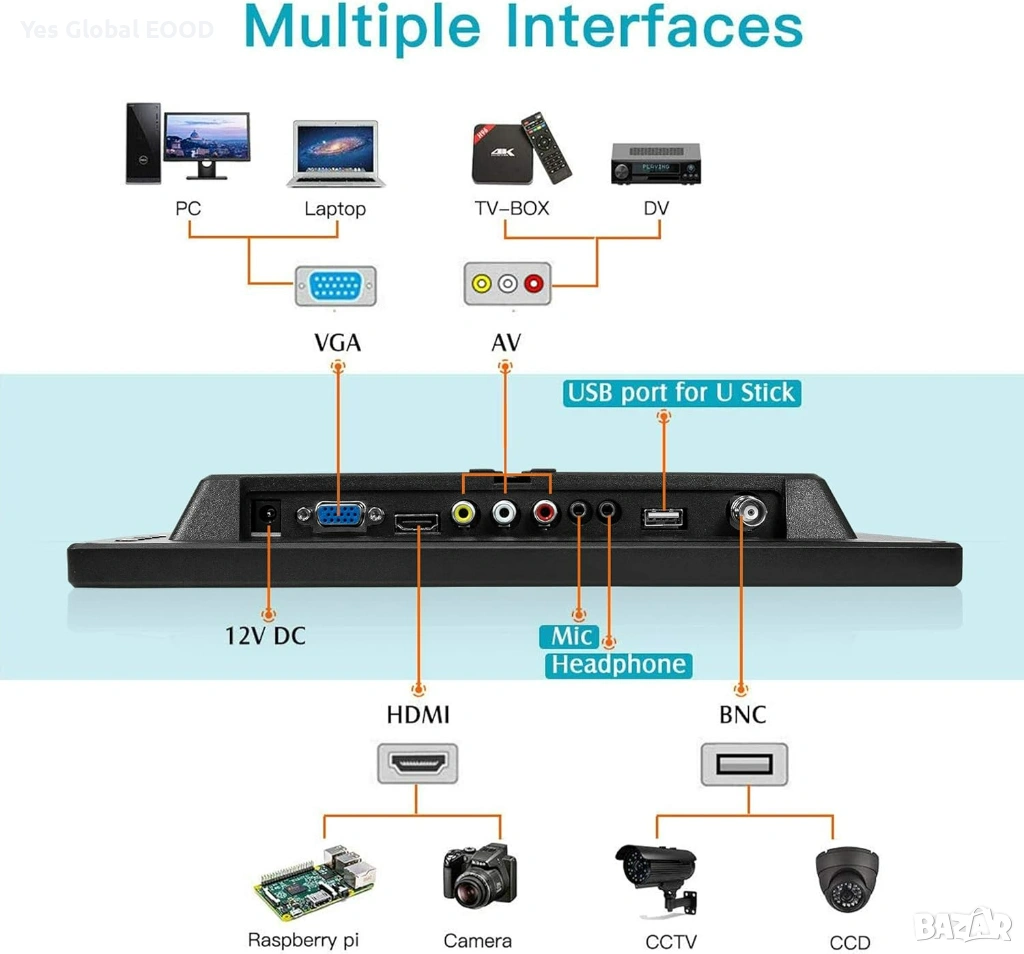 Компактен 13.3-инчов преносим монитор с HD резолюция 1366 x 768 и LED дисплей. Подходящ за компютър, лаптоп, Raspberry Pi, CCTV системи и други устройства.