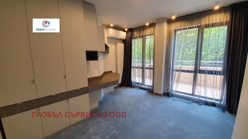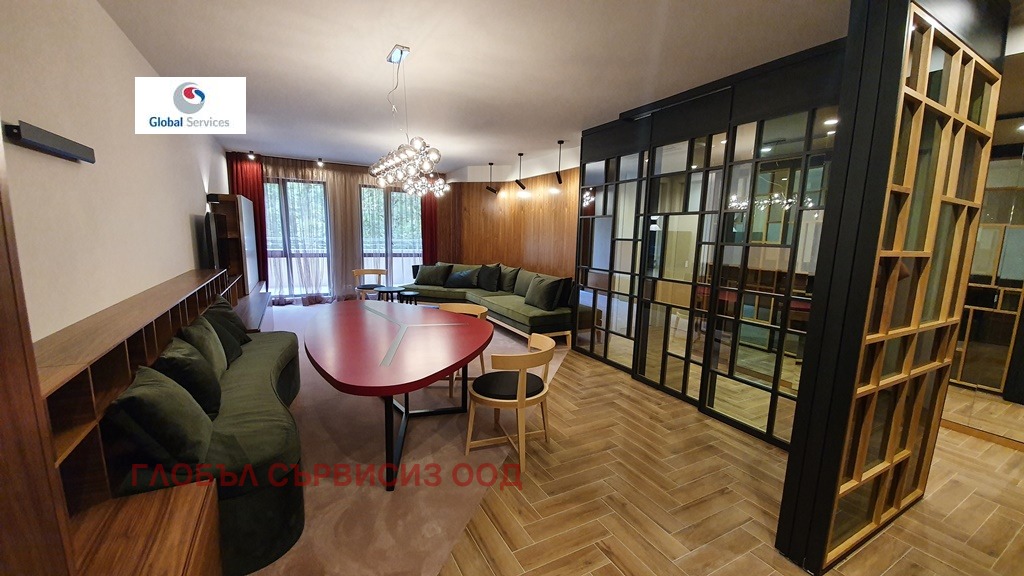 град София, Изток Тристаен апартамент, находящ се на втори етаж в сграда в комплекс Есте в кв. Изток. Апартаментът е изцяло завършен и луксозно обзаведен по дизайнерски проект. Чистата му площ е 110,95 кв.м. Състои се от входно антре, просторна всекидневна с кухня и трапезария, спалня със самостоятелна баня с тоалетна и дрешник, втора спалня, която може да се използва и като кабинет, втора баня с тоалетна, тераса и обособен кът с пералня и сушилня. Цената е 2050 евро/месец без ДДС с включена такса поддръжка за комплекса и подземно паркометър.