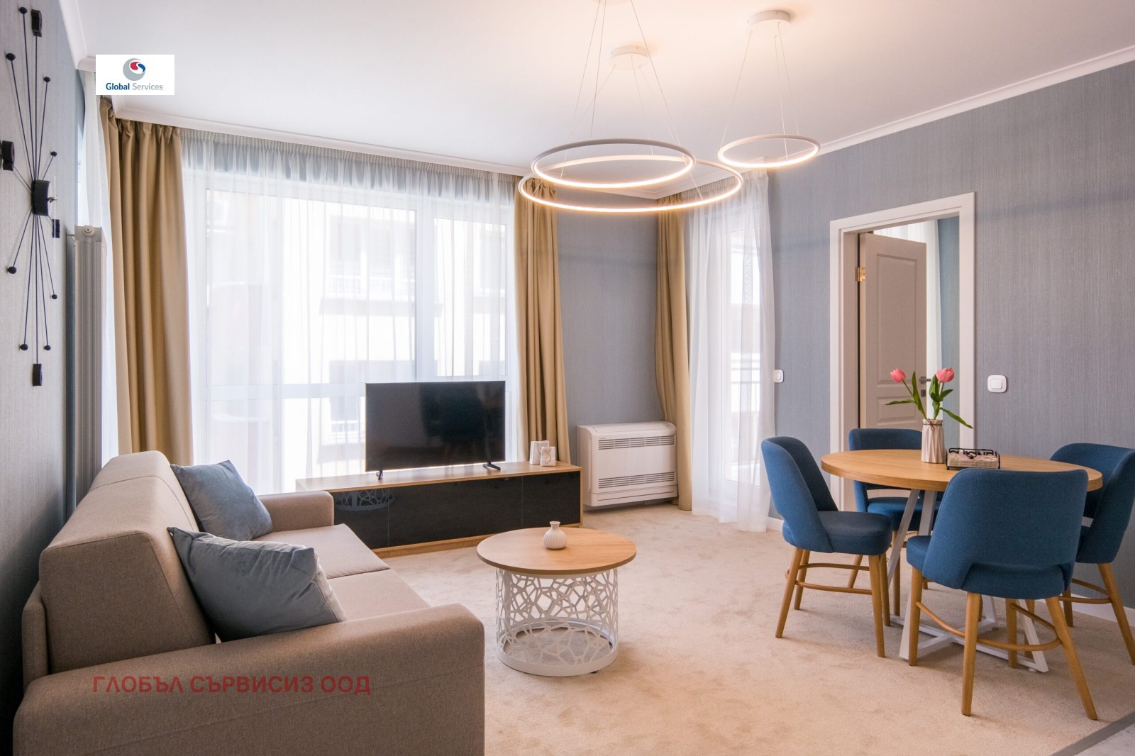 - комфортна мека мебел, холна маса и LCD