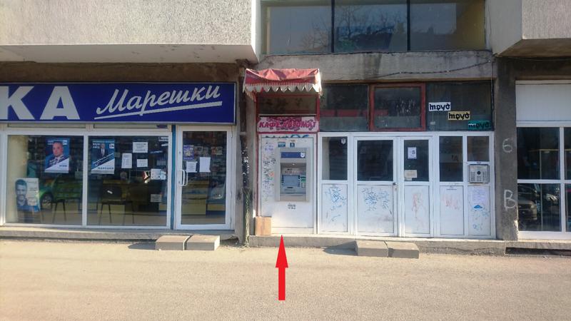 Помещение от два кв.м. намиращо се в жилищен вход на ул. 'Петко Д. Петков' 6, вх. 3 с лице към улицата. Помещението граничи с аптека 'Марешки'. Преди месец в него е функционирал банкомат на ДСК. Подходящо е и за вендинг машина за кафе, пакетирани стоки и др. дейности. Договаряне на цената.