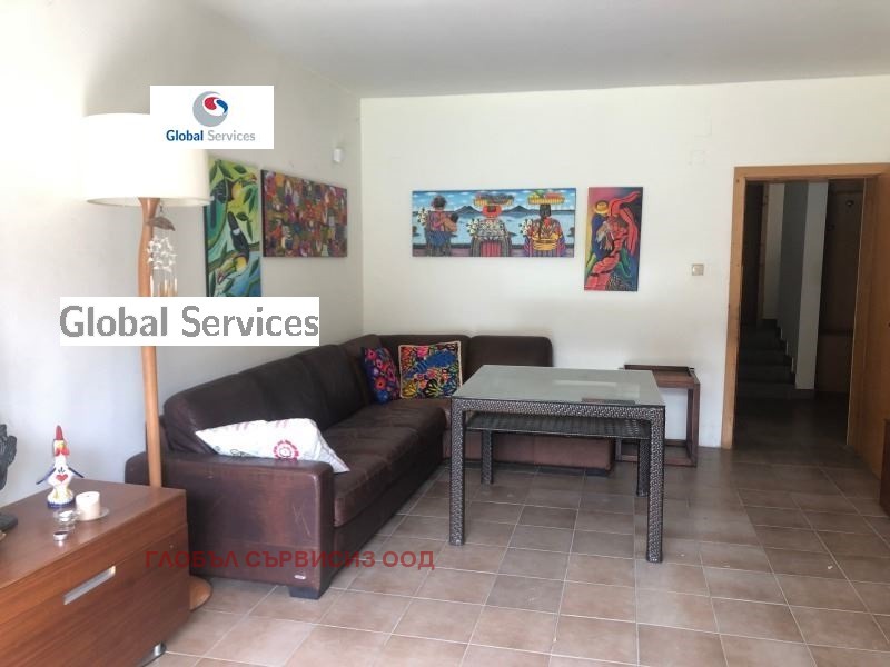 На 1 ет. са разположени просторен хол с трапезария и веранда към южната част на двора с тента за сянка за през лятото, отделна напълно оборудвана кухня, санитарно помещение и кабинет или спалня.