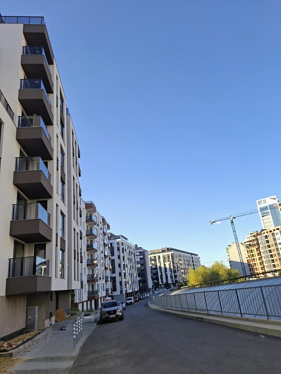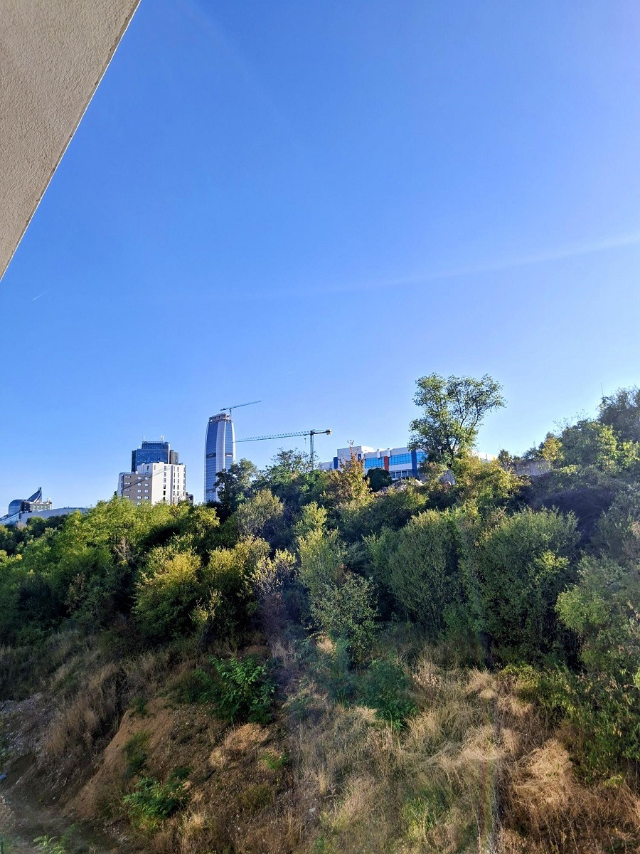 Изложение- югозапад; гледката е към зеленина, а в далечината се очертават силуетите на красивите бизнес сгради на бул. Цариградско шосе;