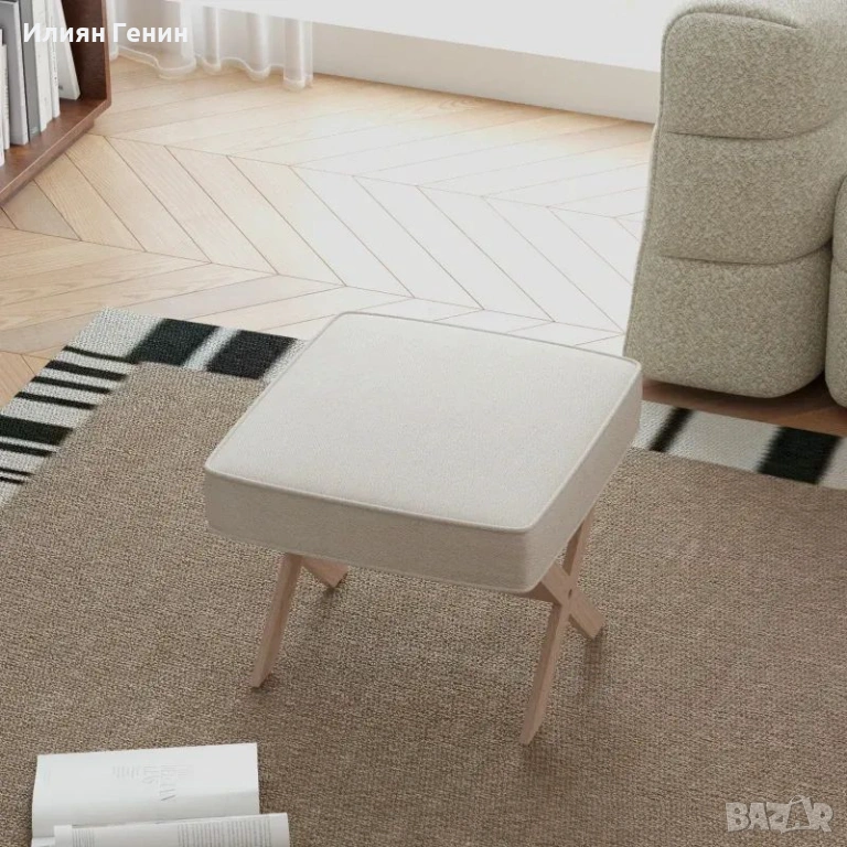 Модерна табуретка HOMCOM, тапицирана с мека седалка, крака от каучуково дърво, за хол, спалня, бежова - 30.00 €.