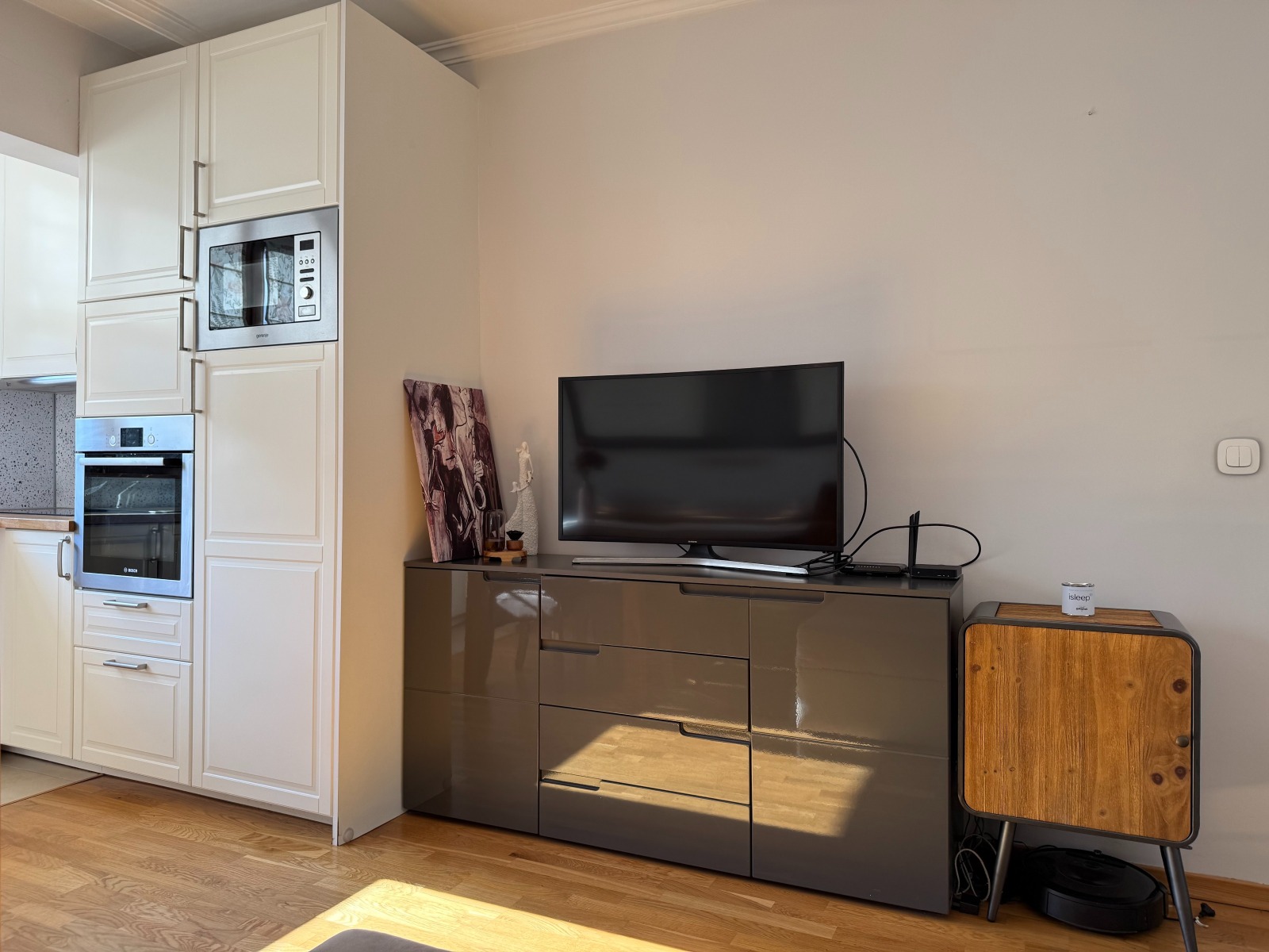 Апартаментът е напълно обзаведен и оборудван, а втората стая е умишлено оставена свободна като пространство, с цел ползване спрямо необходимостта - спалня с единично или двойно легло или пък кабинет.