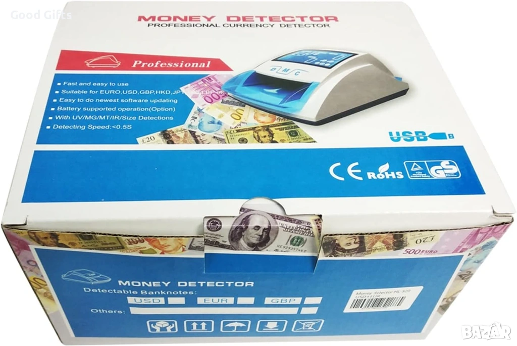 Сигурността вече няма граници! Детекторът 520B е устройство от ново поколение, създадено за бърза и безпогрешна проверка на евро (EUR) и долари (USD). Това е идеалното решение за бизнеси, които изискват мобилност – куриерски фирми, доставки на храна, таксиметрови услуги или временни търговски обекти.