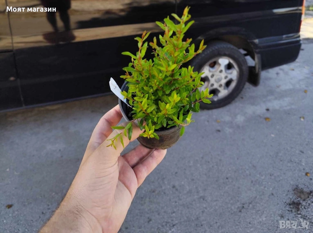 Нар фиданки – Punika granatum Студоустойчив и Самоопрашващ Размер 5-10см за 3€ Размер около 15-25см за 5,90 € Размер около 40-60см за 11 € Размер 90-110см за14€ Подрязани на тези размери Мини нар 10-20см за 8€ Безсмен нар 30-50см за 9€ Много от растенията променят вида си през периодите на своята вегетация, но тук в сайта със снимки се представят в най-атрактивния им вид. Повечето снимки в сайта ни покзват как ще изглеждат растенията след определен период и положени необходимите грижи. Моля разгледайте и другите ни растения в сайта. Благодарим че избрахте нас 😊 Тел. 0877977519