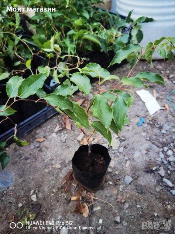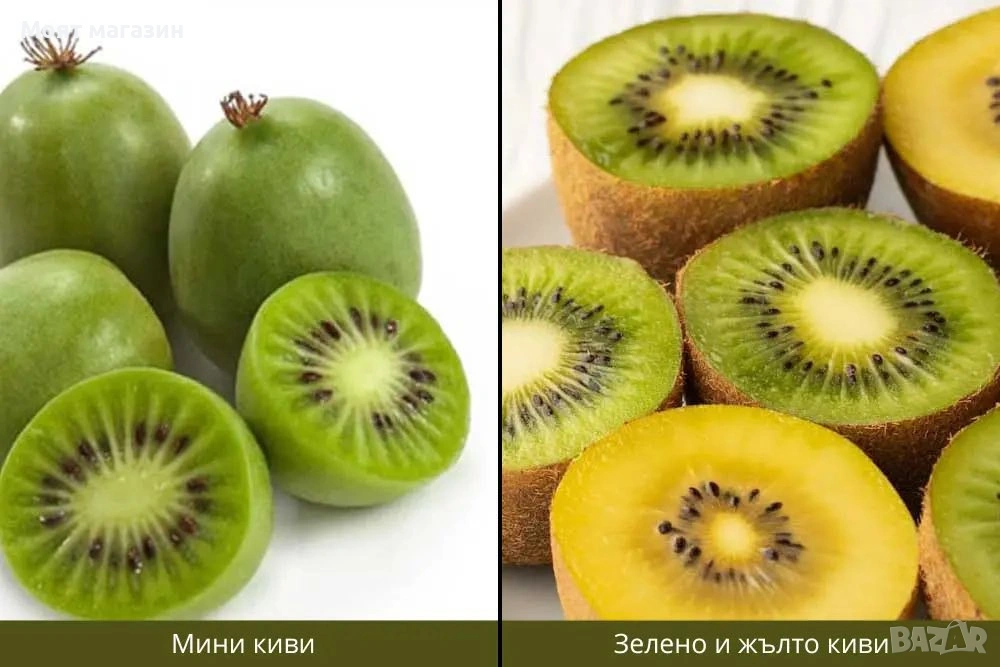 Киви – Разсад (Студоустойчиви сортове) Предлагаме 10 вида студоустойчиви кивита, подходящи за отглеждане в България. Разсадите са здрави, добре вкоренени и готови за засаждане в градина или двор. 1️⃣ Киви Хейуърд – женско растение Описание: Най-разпространеният и предпочитан сорт киви в света. Плодовете са едри, с класически зелен цвят и отличен балансиран вкус – сладко-кисел. Характеристики: Женско растение – нуждае се от мъжко за опрашване Плодове: едри, сочни, ароматни Узряване: октомври Добив: много висок Студоустойчивост: до –20°C Цена: (12, 99€) / саксия 2️⃣ Киви Томури – мъжко растение Описание: Сорт, използван изключително като опрашител. Не дава плодове, но е задължителен за опрашване на женските сортове киви (Хейуърд, Голд и др.). Предимства: Силен и надежден опрашител Съвместим с повечето женски сортове 1 мъжко растение опрашва до 5 женски Цена: (12, 99€) / саксия 3️⃣ Киви Джени – самоопрашващо Описание: Изключително удобен сорт за малки дворове и любителско отглеждане. Не изисква мъжко растение. Характеристики: Самоопрашващо Плодове: средни по размер Вкус: сладък, ароматен Подходящо за ограничено пространство Студоустойчив сорт Цена: (13 €) 4️⃣ Киви Боскосп – самоопрашващо Описание: Непретенциозен и издръжлив сорт, подходящ както за начинаещи, така и за опитни градинари. Характеристики: Самоопрашващо Стабилен добив Добра устойчивост на студ Лесно за отглеждане Цена: (13 €) 5️⃣ Мини киви Аргута – самоопрашващо Описание: Мини кивито Аргута дава малки, сладки плодове с гладка кора, които се консумират цели, без белене. Характеристики: Самоопрашващо Изключително студоустойчиво (до –30°C) Плодове: дребни, много сладки Подходящо за северни райони Цена: (8 €) 6️⃣ Златно киви (Golden Kiwi) – женско Actinidia deliciosa Описание: Златното киви се отличава с жълта вътрешност и много сладък, фин вкус. По-рядък и ценен сорт. Характеристики: Женско растение Нуждае се от мъжко киви Томури Плодове: жълти, сладки, ароматни Висока пазарна стойност Цена: (16,90 €) ➡️ Мъжко киви за опрашване: Цена: (12, 90€) 1 мъжко растение опрашва до 5 женски 7️⃣ Червено киви ‘Ken’s Red’ – самоопрашващо Описание: Атрактивен сорт с червена вътрешност и изключително приятен вкус. Подходящ както за консумация, така и за декорация. Характеристики: Самоопрашващо Плодове: червени, сладки Студоустойчиво Рядък и декоративен сорт Цена: 9,90 € 8️⃣ Червено киви – женско растение Описание: Женски сорт червено киви, който дава плодове само при наличие на мъжко растение. Характеристики: Женско растение Изисква мъжко за опрашване Плодове: червени, ароматни Цена: (9,90 €) 9️⃣ Червено киви ‘Корнел’ – мъжко растение Описание: Опрашител за женските червени сортове киви. Характеристики: Мъжко растение Не дава плод 1 мъжко растение опрашва до 5 женски Цена: (9,90 €) 10. Киви Анна – Женско растение Цена: (9,90 €) Киви Анна е високодобивен и студоустойчив сорт, подходящ за отглеждане в двор и градина в България. Сортът се отличава с добра адаптация към климатичните условия и дава вкусни, ароматни плодове при правилно опрашване. Растението е силнорастящо и развива дълги лози, което го прави подходящо за отглеждане на асми, перголи и конструкции. Започва да плододава няколко години след засаждане и осигурява стабилен добив в продължение на много години. ✅ Предимства на нашия разсад: ✔ Студоустойчиви и доказани сорто