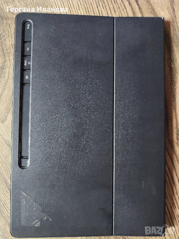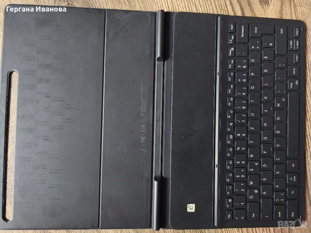 Смарт кейс с Bluetooth клавиатура: Черен, със специално отделение за писалка и сваляема клавиатура (все още с фолиото).