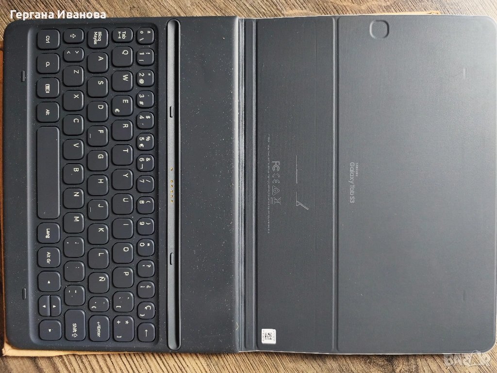 Оригинална клавиатура Samsung Galaxy Tab S3 (Book Cover Keyboard): Магнитно захващане, елегантен сив цвят, испански лейаут. Изключително тънка и удобна.