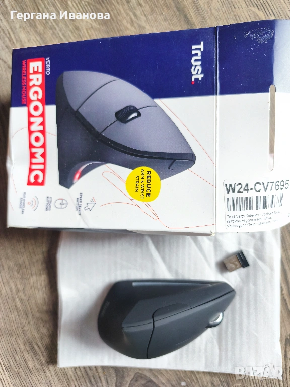 Продавам ергономична безжична мишка Trust Verto Wireless, идеална за хора, които прекарват дълги часове пред компютъра и искат да се справят с болките в китката и предмишницата.