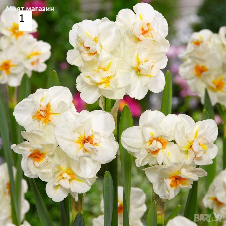 Луковици на Нарцис Налични 5 вида Цена за 1бр (0.80 €) Номерирани са всички снимки и може да избирате. Много от растенията променят вида си през периодите на своята вегетация, но тук в сайта със снимки се представят в най-атрактивния им вид. Повечето снимки в сайта ни покзват как ще изглеждат растенията след определен период и положени необходимите грижи. Моля разгледайте и другите ни растения в сайта. Благодарим че избрахте нас 😊 Тел. 0877977519