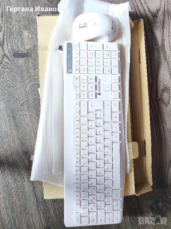 Продавам елегантен бял безжичен комплект (клавиатура и мишка) от марката KOORUI, модел BK104. Изключително подходящ за офис работа, обучение или за хора, които държат на естетиката на своето бюро. Белият цвят придава модерен и изчистен вид, а матовото покритие не оставя отпечатъци.