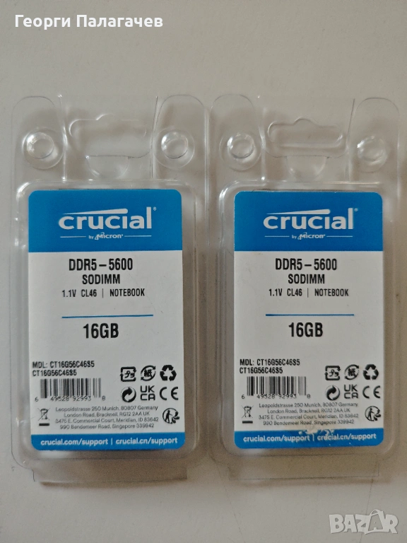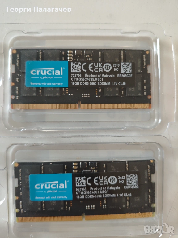 Продавам 2 х 16GB DDR5 5600 Crucial → Обява 53641641