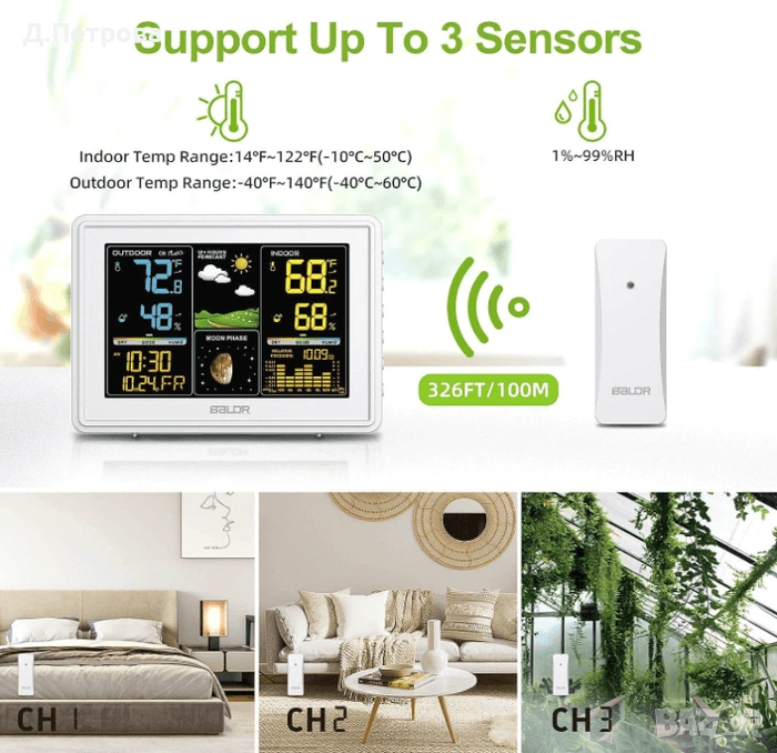 BALDR безжична метеорологична станция с 3 сензора – Бяла → Обява 53641802