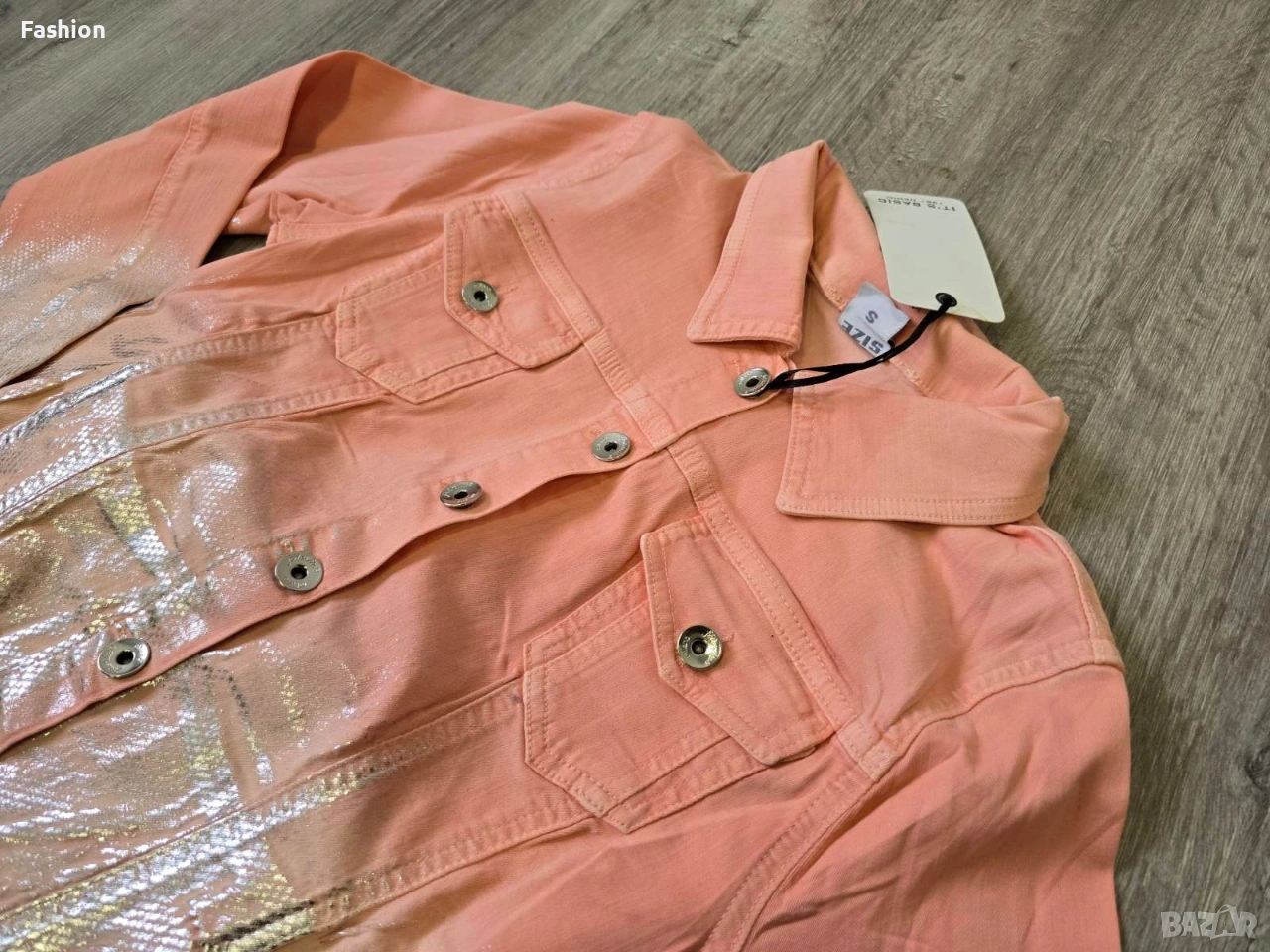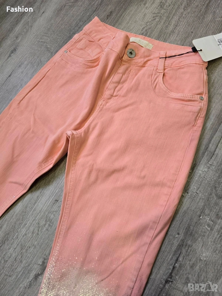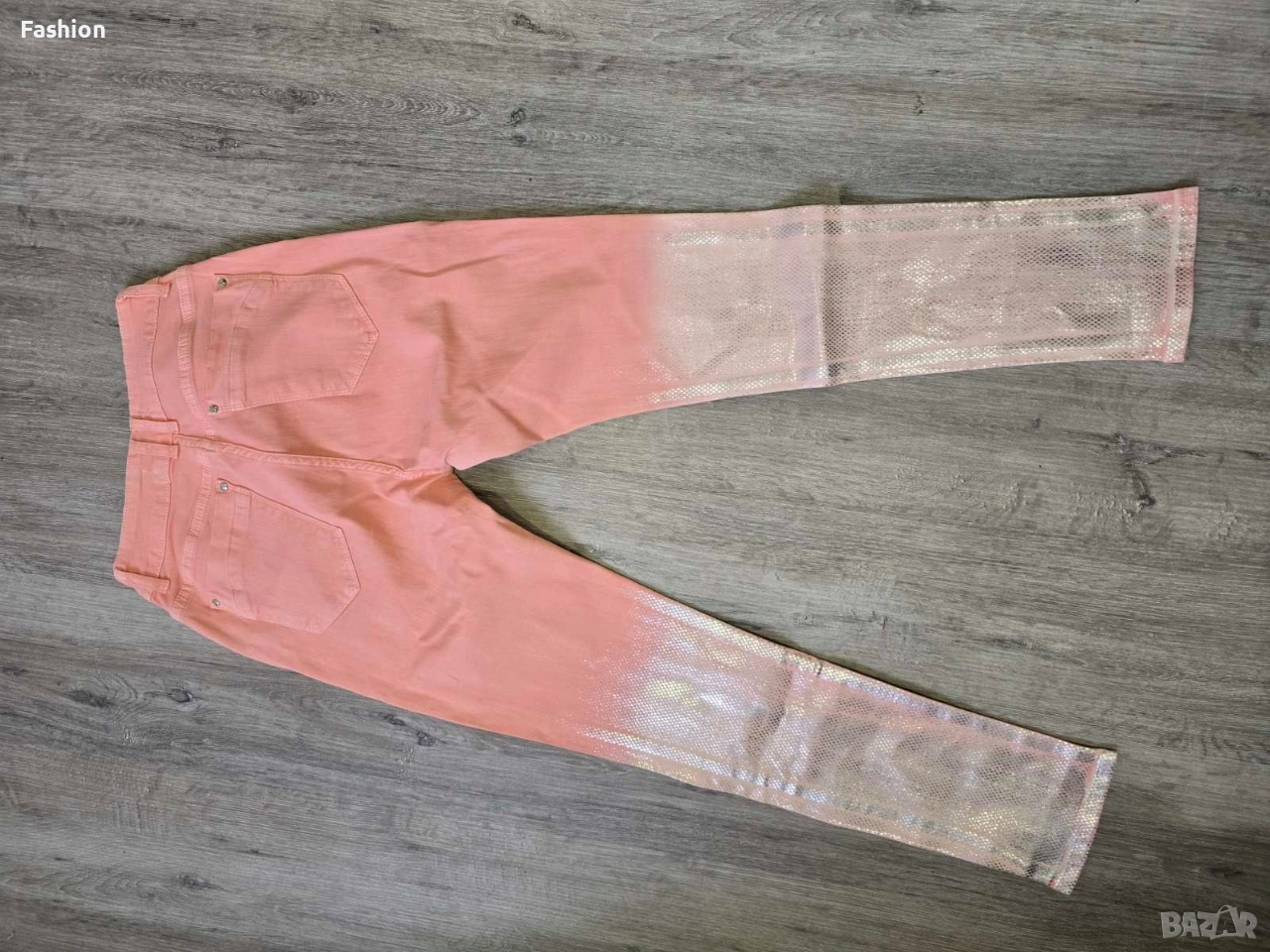Нов уникален дънков комплект в розов цвят със сребърен акцент. S номер. Еластична материя. По тялото. Дънките са с висока талия. Не се разделят. Цената е 30€ за комплекта. Изпращам с преглед и тест преди заплащане в офис