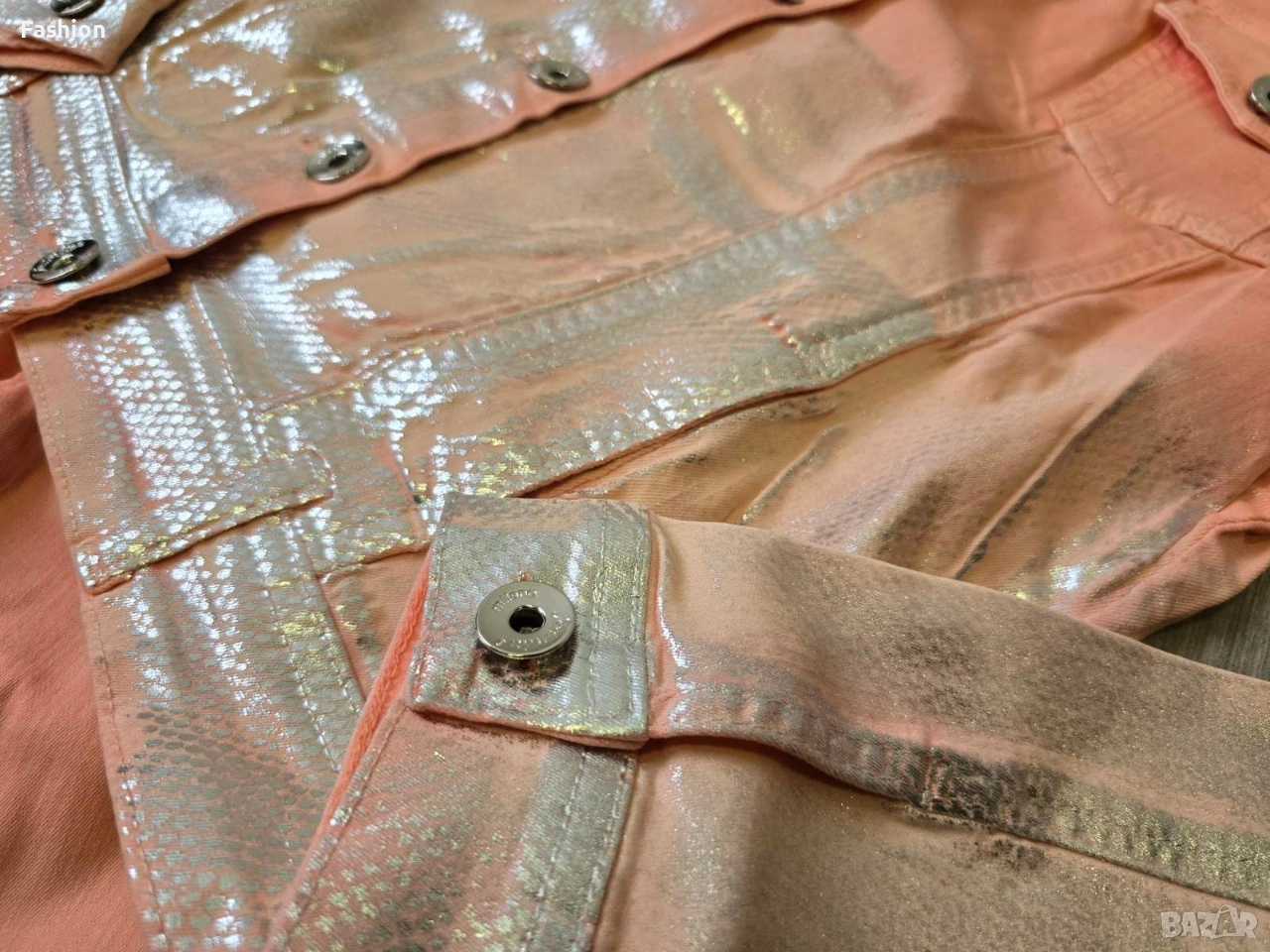 Нов уникален дънков комплект в розов цвят със сребърен акцент