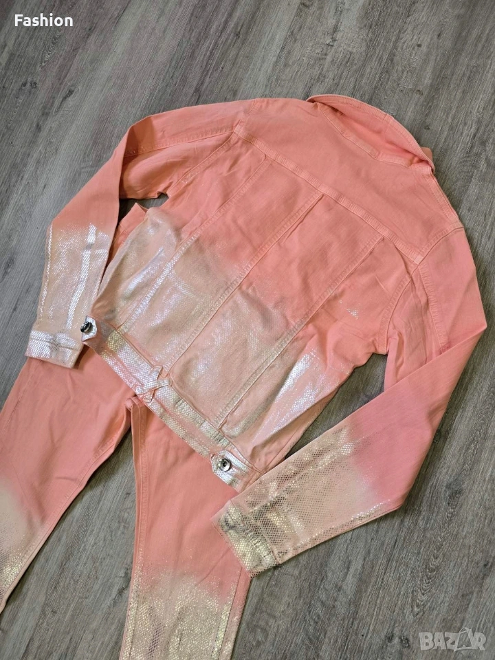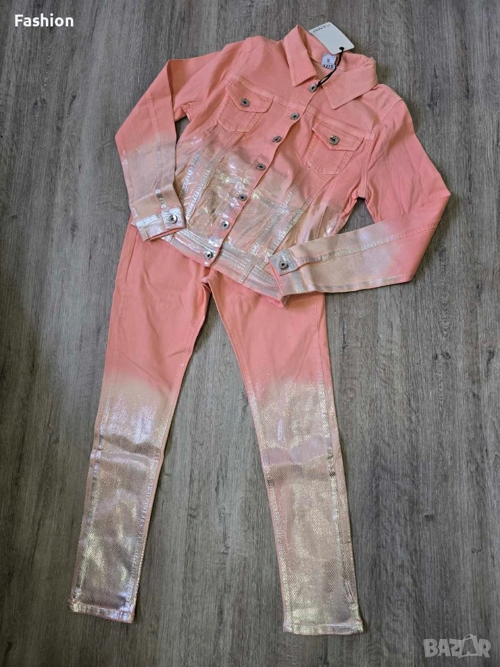 Нов уникален дънков комплект в розов цвят със сребърен акцент → Обява 53641806