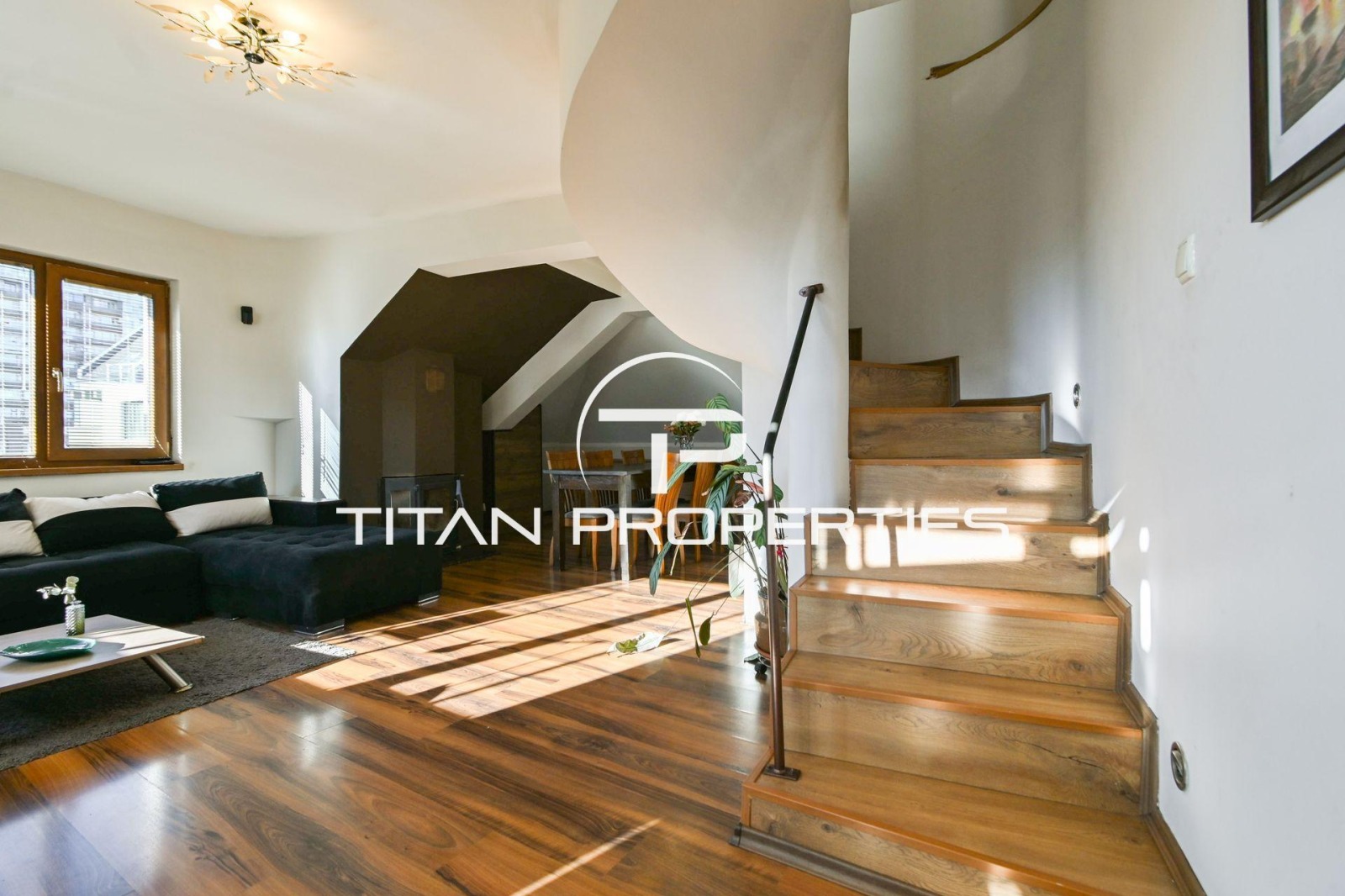 Жилището с площ 160 кв.м. се простира на две нива 6-и и 7-и етаж в седеметажна сграда.