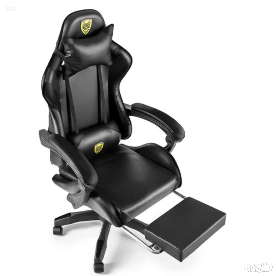 Черен геймърски стол с прибираща се поставка за крака – максимален комфорт при дълги часове игра
