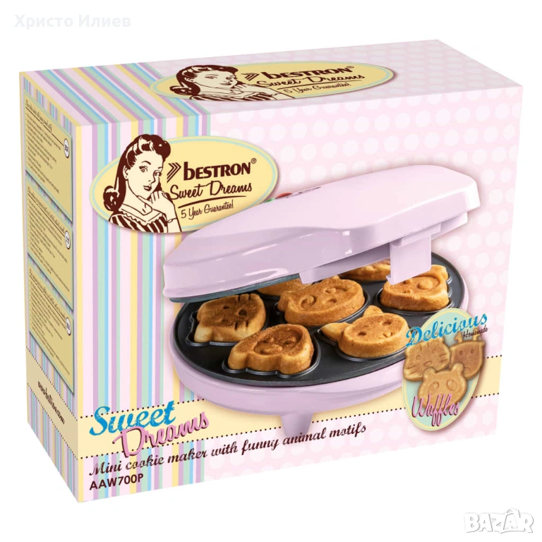 С розовия гофретник AAW700P 700W от Bestron можете да приготвите най-вкусните гофрети в собствената си кухня!