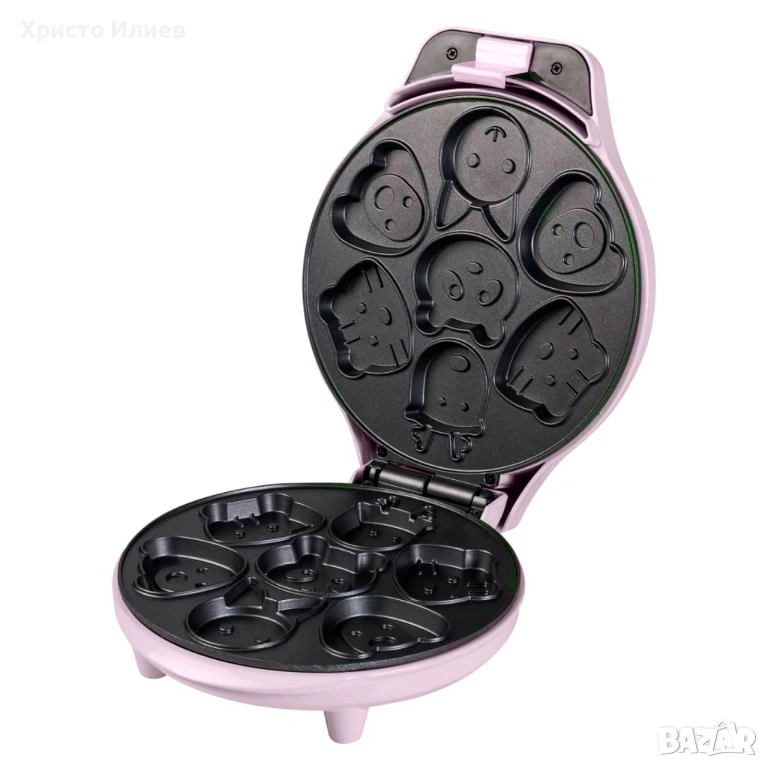 Този гофретник има незалепващо покритие и термоустойчив корпус. Може да приготви седем малки гофрети с форма на животни наведнъж, а светлинен индикатор светва, когато гофретите са готови. Гофретникът може да се съхранява вертикално, за да се спести място, и е оборудван с удобно място за съхранение на кабела и неплъзгащи се крачета.