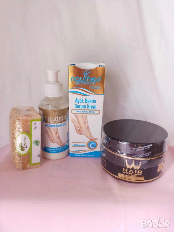 Промо пакет 901-сапун с магарешко мляко,маска да коса и серум за крака → Обява 53642167