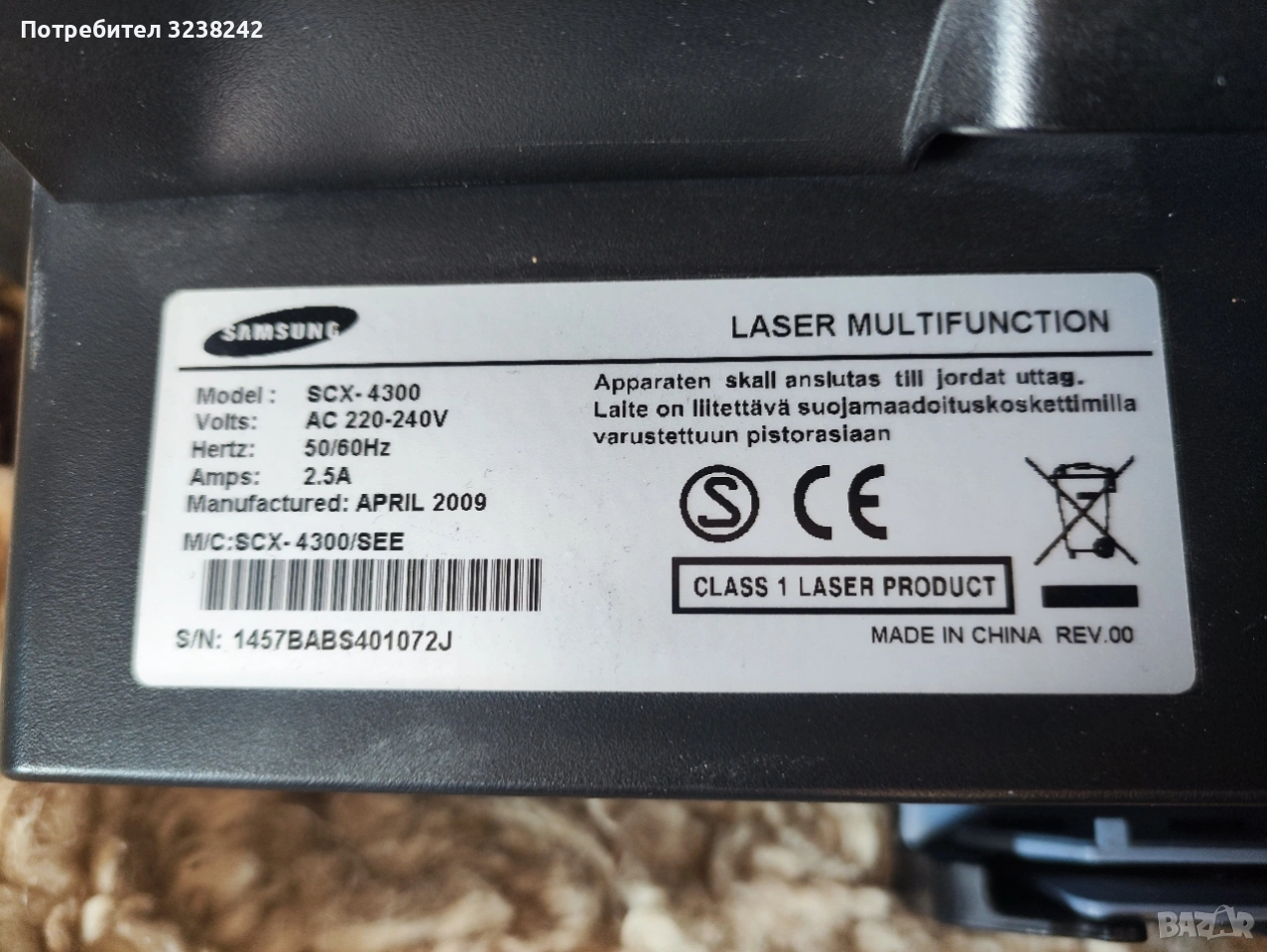 Samsung scx-4300 лазерен принтер → Обява 53642239