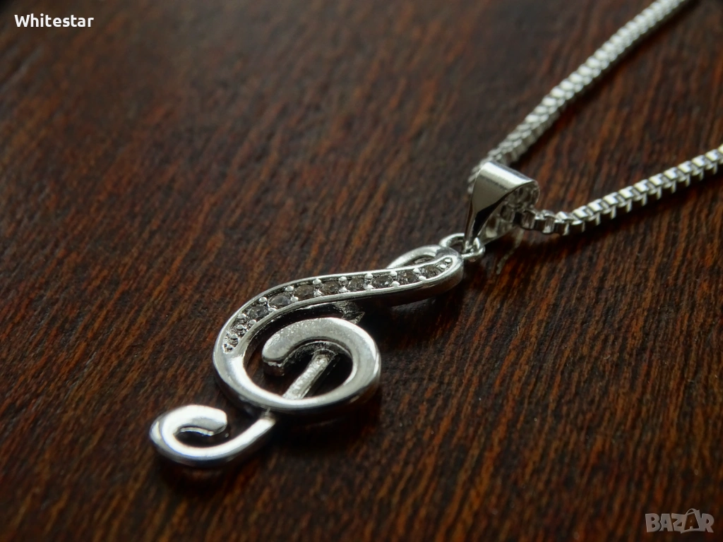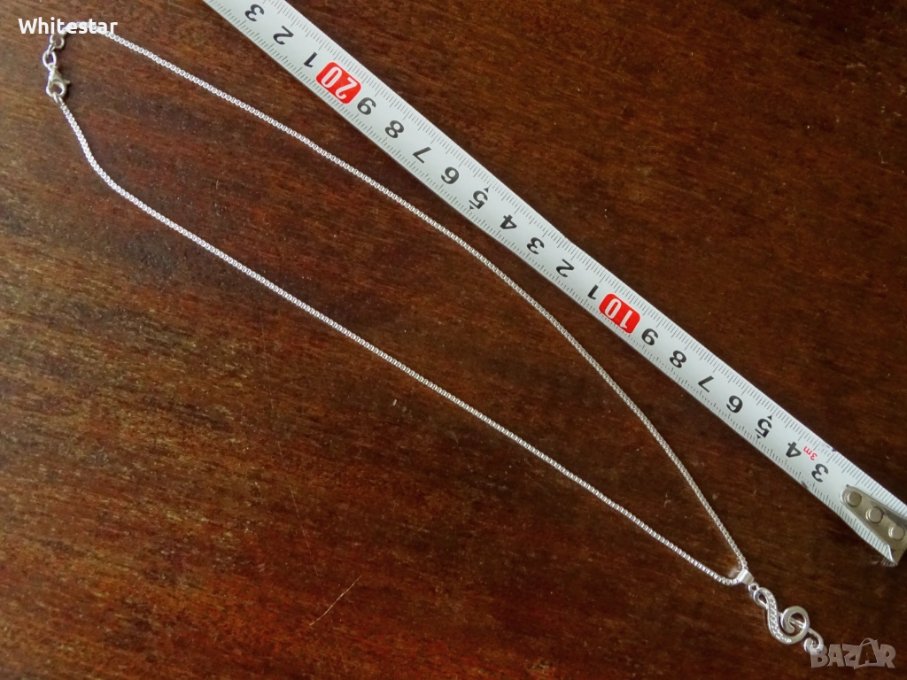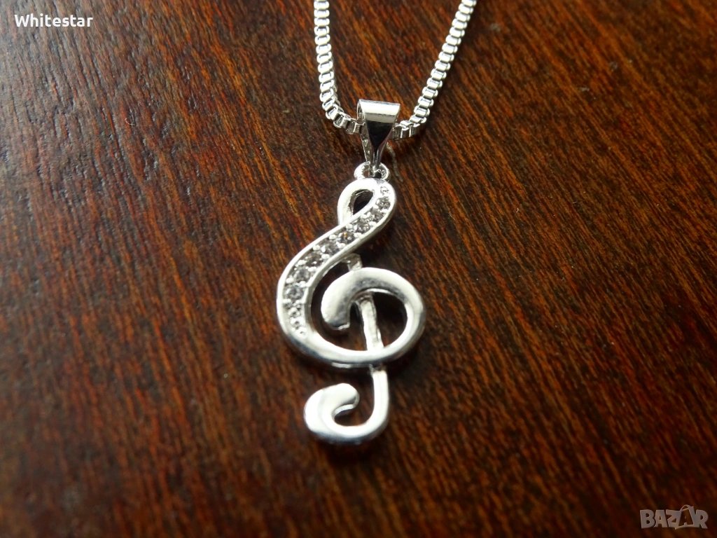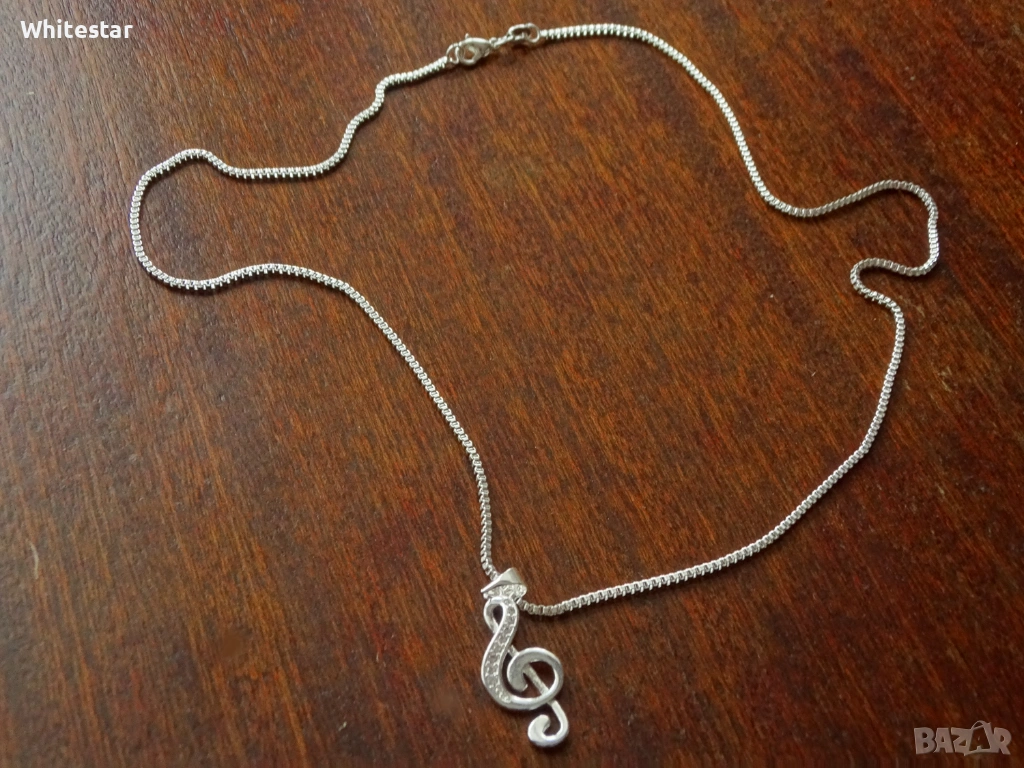 Посребрен дамски ланец с художествен мотив "Ключ сол" → Обява 53642304