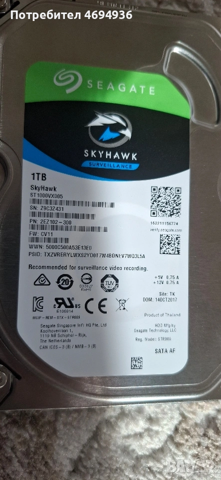 SEAGATE 1TB HDD Surveillance Storage SkyHawk 3.5 Size SATA 3 → Обява 53642381