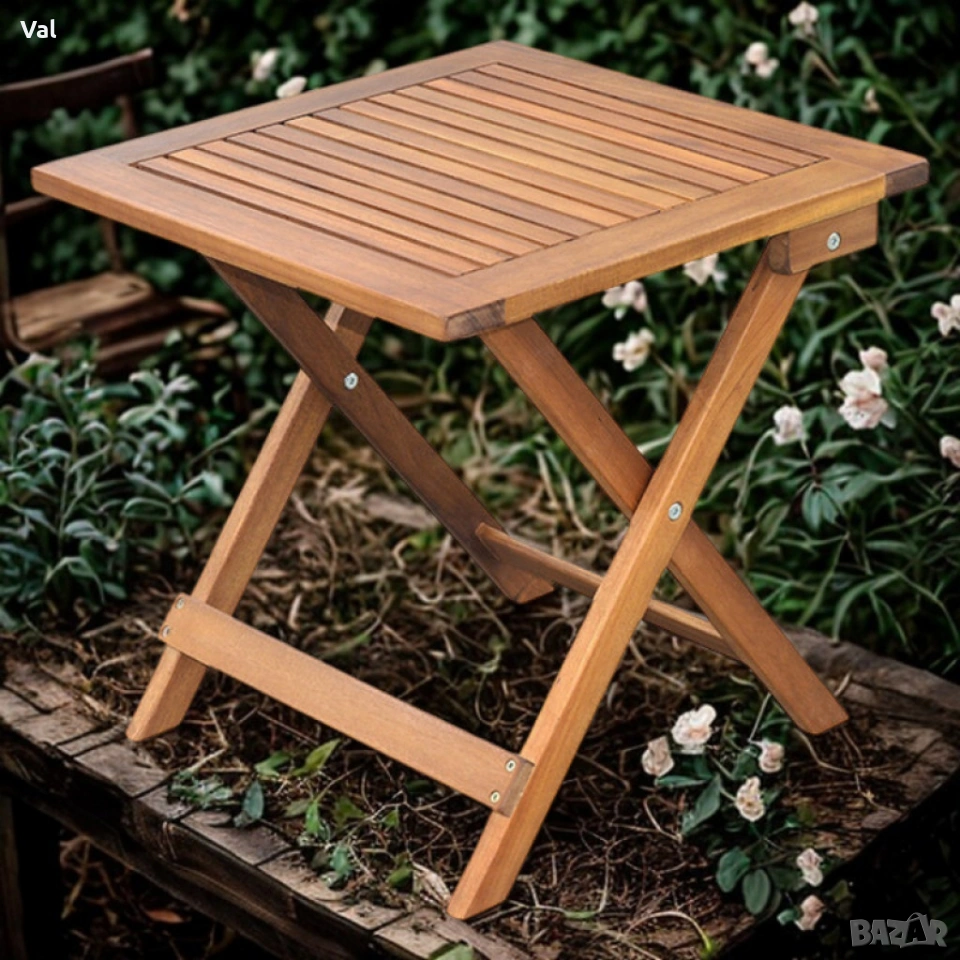 Маса сгъваема Muhler Meranti - 50x50xH68cm, дърво → Обява 53642451
