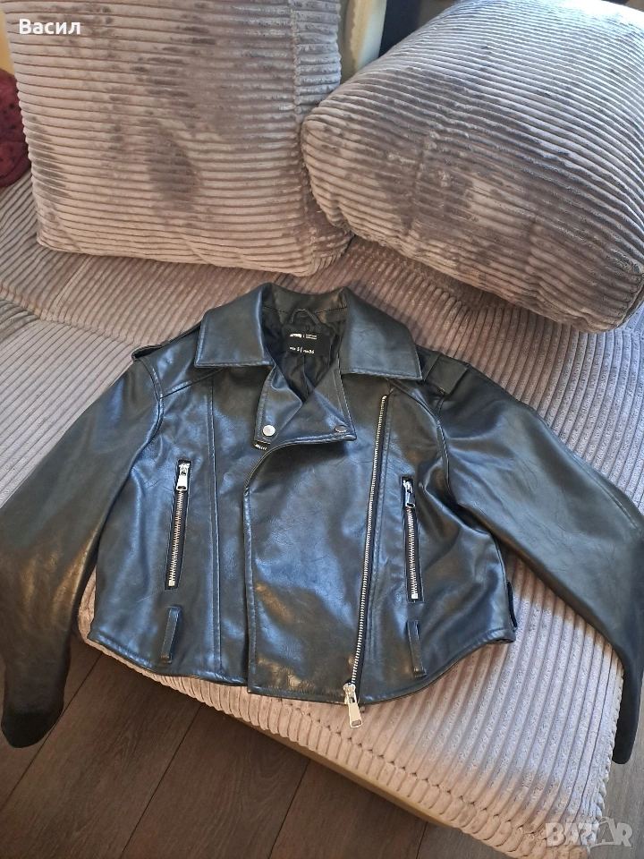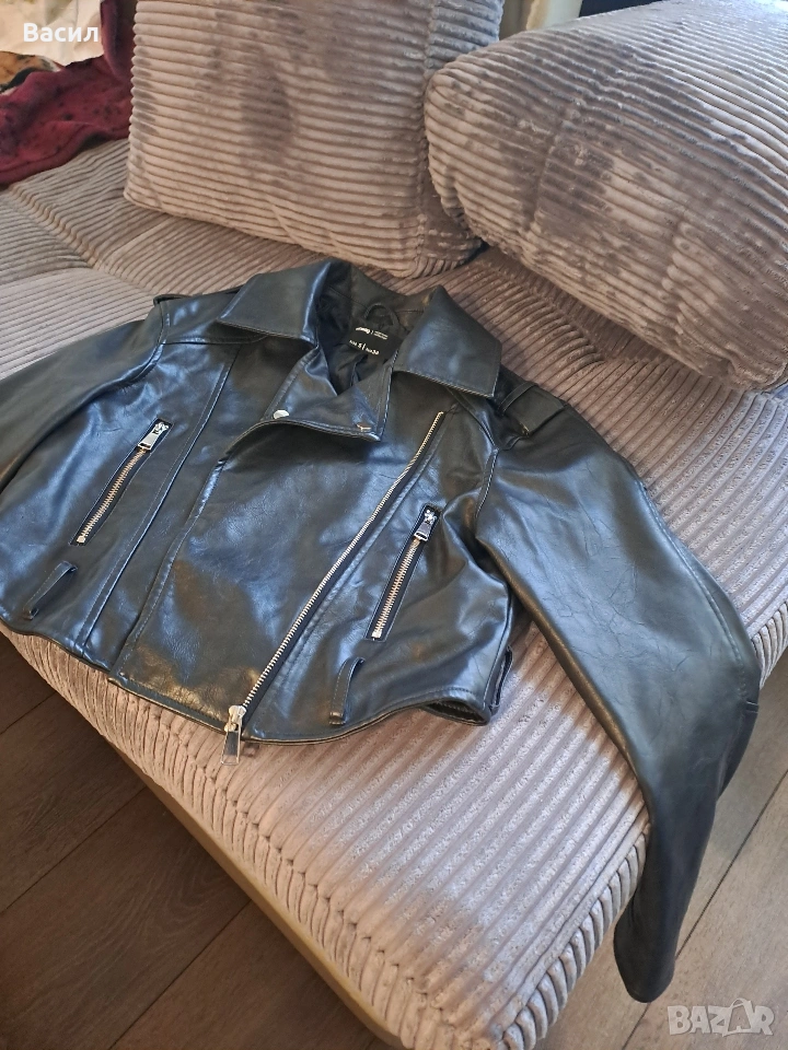 Черно дамско кожено яке от в размер S. Идеално за стилни и елегантни визии. Удобно за носене и подходящо за различни поводи. Еко кожа!