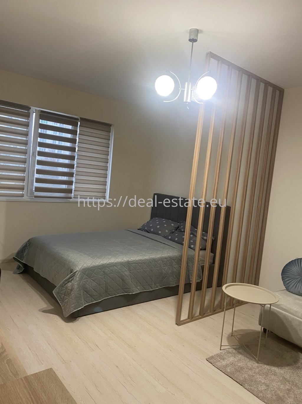 Жилището е след основен ремонт и се намира на 5-ти етаж в саниран блок с асансьор и контролиран достъп. Състои се от кухня с остъклена тераса, хол с обособен кът за спане, баня със санитарен възел. Апартаментът е напълно обзаведен и оборудван с всички необходими електроуреди и мебели, готов за нанасяне. Подходящ за сам човек или двойка.Обява 2183.