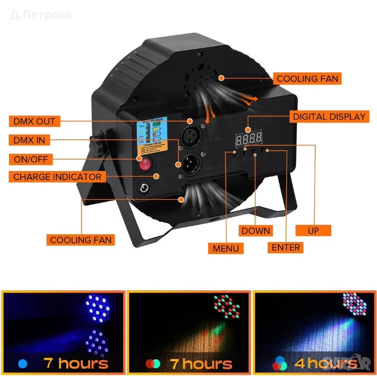Акумулаторни LED прожектори RGB 36W DMX Sound Active с дистанционно, снимка 1 - Друга електроника - 53642505 Акумулаторни LED прожектори RGB 36W DMX Sound Active с дистанционно, снимка 2 - Друга електроника - 53642505 Акумулаторни LED прожектори RGB 36W DMX Sound Active с дистанционно, снимка 3 - Друга електроника - 53642505 Акумулаторни LED прожектори RGB 36W DMX Sound Active с дистанционно, снимка 4 - Друга електроника - 53642505 Акумулаторни LED прожектори RGB 36W DMX Sound Active с дистанционно, снимка 5 - Друга електроника - 53642505 1/5
