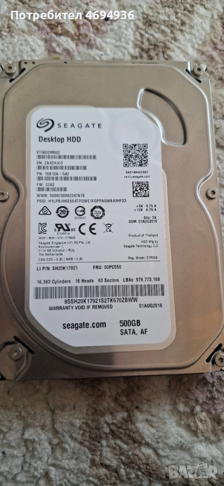 Seagate Barracuda 500GB ST500DM002 7200RPM HDD SATA AF 3.5" Desktop HDD → Обява 53642607