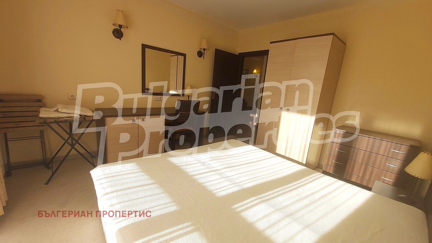 Модерната кухня включва фурна, двоен котлон, абсорбатор, мивка, хладилник, пералня, дивани, телевизор, холна маса, маса за хранене с 4 стола, климатик. Спалня - трикрилен гардероб, двойно легло, нощни шкафчета, двукрилен гардероб, скрин. Банята е с вана, панорамно огледало, позициониран сешоар и достатъчно голяма мивка с плот.