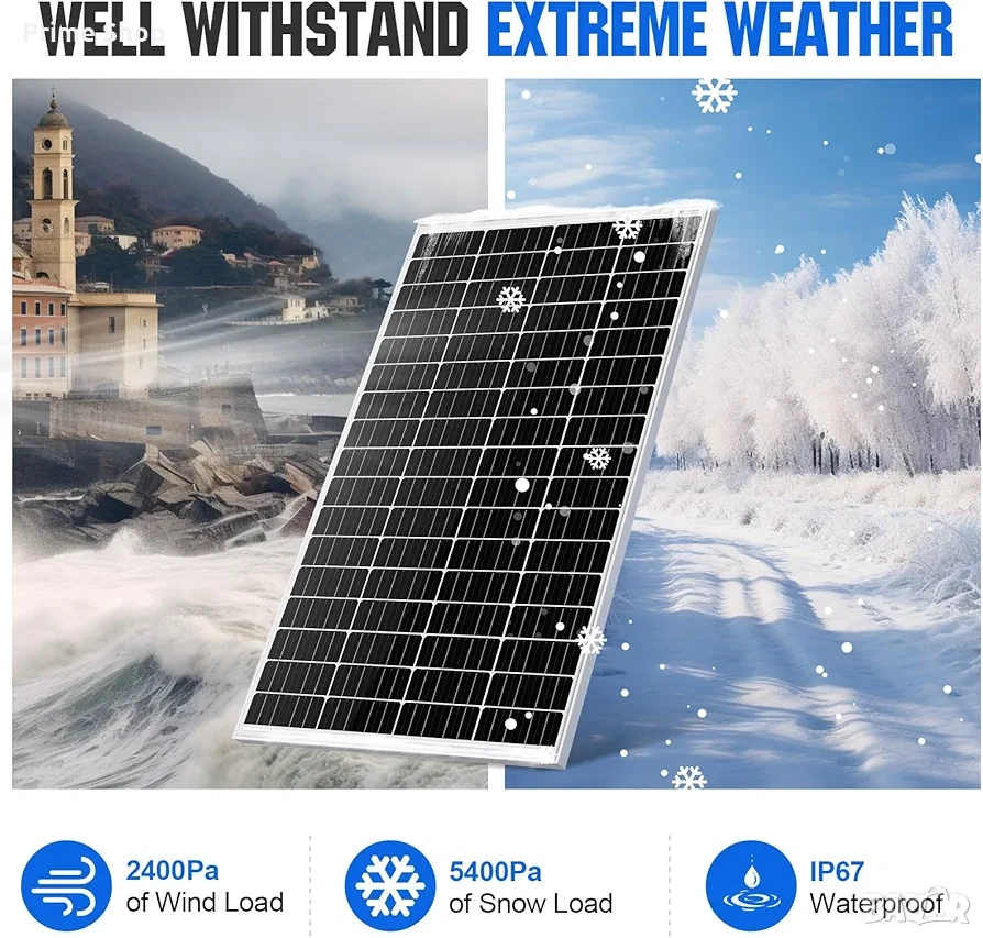 Тагове: соларен панел, монокристален панел, ECO-WORTHY, 170W солар, 12V фотоволтаик, солар за кемпер, солар за каравана, възобновяема енергия, автономна система, соларна батерия
