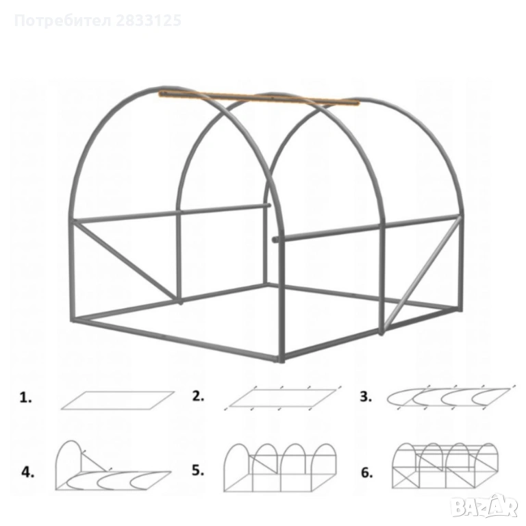 Здрава конструкция за оранжерия - поцинковани тръби и лесен монтаж → Обява 53642895