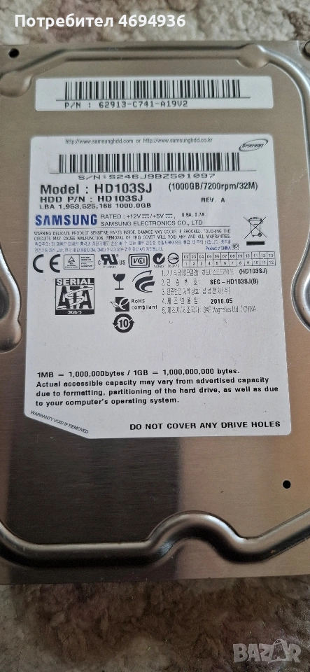 HDD103SJ Samsung 3.5 1TB → Обява 53642970