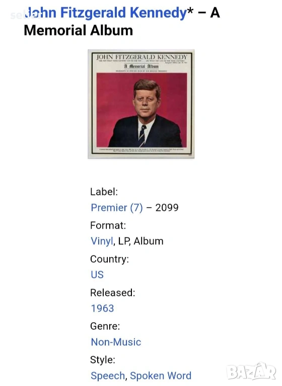 Предлагам две грамофонни плочи на американския президент Джон Фицджералд Кенеди: Първата е: Това е