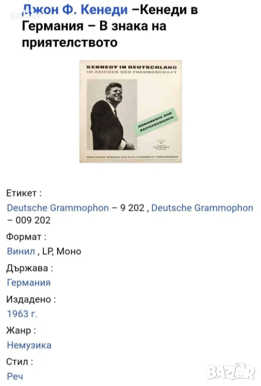 Това е винилна плоча от 1963 г., озаглавена "Kennedy In Deutschland - Im Zeichen Der Freundschaft" (Кенеди в Германия - В знака на приятелството).