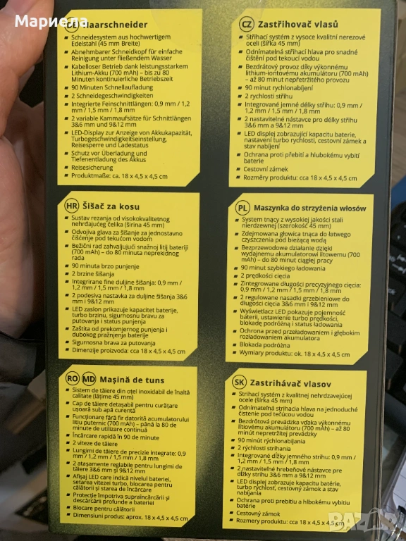 Интегрирани фини дължини на подстригване : 3/6/9/12/15/18 мм.